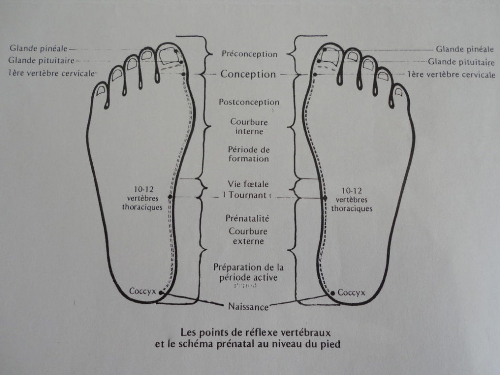 Pour la faire TRÈS brève (les puristes dont j’aurais tendance à être me pardonneront, je l’espère), il s’agit ici, sur un plan purement « technique » d’effectuer un simple effleurement de la zone réflexe de la colonne vertébrale sur les pieds, les mains et la tête (zone du schéma prénatal). Sur un plan plus « intérieur », il s’agit d’une sorte de méditation à deux, une méditation sans but, sans intention, sans « vouloir ». Il s’agit de se mettre en mode d’accueil, de réceptivité, de non-vouloir et de simplement offrir un espace à ce qui veut se passer.